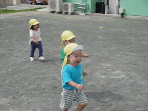 かけっこは、一周走ります。力強い走りをお楽しみに♡