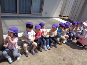 5月半ばから、お集まりが始まり、朝は戸外遊びからスタートするようになりました。