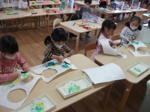 5月のさくらんぼ製作では、お花紙をクチャクチャして、上手にペタンすることが出来ました‼