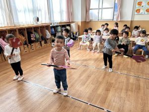 「かごめかごめ」や縄跳びをして楽しんでいます。