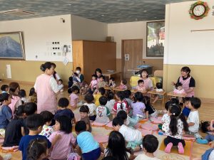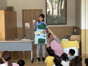 先生からの出し物は「3匹のこぶた」のエプロンシアターでした。