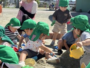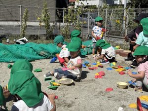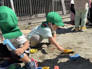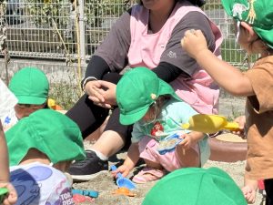シャボン玉をしたり、洞窟に入ったり、ジャングルジムの中に入ったりなどお友達や保育者と一緒に楽しみました。