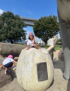 恐竜の卵の上で休憩をしたり、恐竜に登ったり、滑り台をしてたくさん遊びました🦕