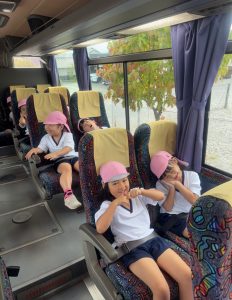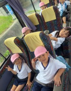 バスの中では、歌を歌ったり、お弁当の話、何をして遊ぶのかウキウキな子どもたちでした🌟