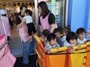 保育園では、毎月様々な災害等を想定し、避難訓練を行っています。