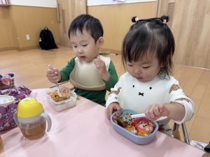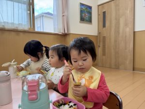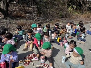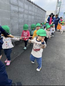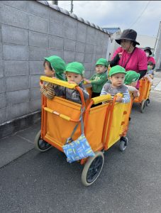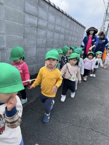 歩いている時には、「トラックだー!バスだー!」とお話を楽しんだり、近隣の方々にバイバイしたりしていた可愛い子どもたち。