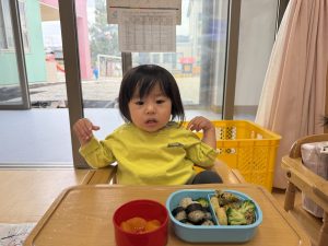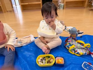そして、保護者の方が朝早くから作ってくれた手作り弁当を保育園で食べました。