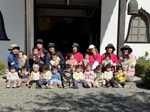 近くのお寺まで行き、集合写真を撮ったり、外でのおやつを食べ楽しんできましたよ。