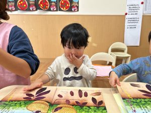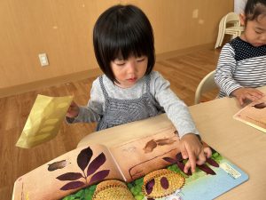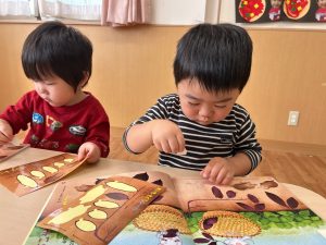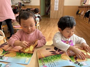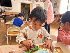 おいものシールを貼りながら、モグラがいるー!など楽しみながら行う様子が見られました。