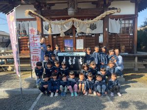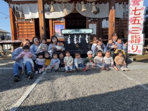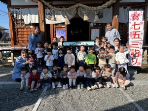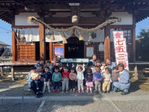 今年は年長児のみ本殿に入り、年中・年少は本殿の外から健やかな成長を願いご祈祷してもらいました。