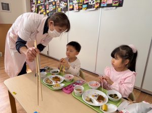また、箸を使う時は、箸を持って立ち歩かない、お友達を突かないなど注意することも教えてもらいました。