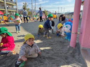 スコップやお皿を持って、一生懸命砂をすくってて、可愛らしい姿がたくさん見られました。