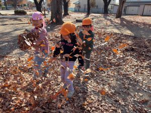 公園に着くと大きな滑り台で遊んだり、落ち葉を集めて投げたりどんぐりを拾ったりと自然に触れながら楽しく遊びました♪