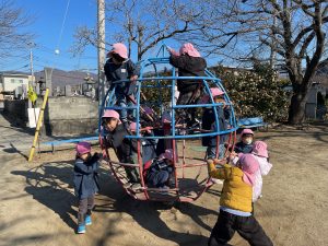 12月後半は戸外で身体をたくさん動かして遊んだり、室内で塗り絵やブロックなどを使って楽しく過ごしました。