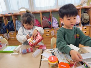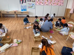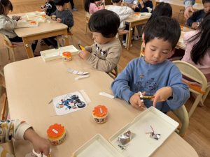 ハサミの使い方もとても上手になり手首を回しながら一生懸命切る姿が見られました。