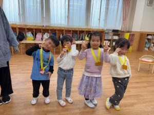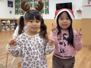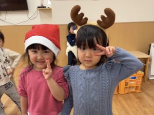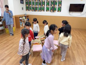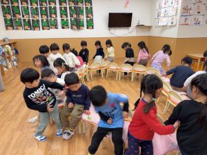 クリスマスの曲を流し椅子取りゲームをした時には負けないぞと意気込み参加する姿が見られました。