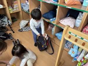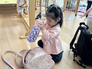 水筒やエプロンなどをしまって、、