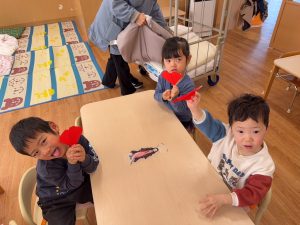 今までの製作は泣いてしまう子もいましたが、泣くことなく取り組めて上手にできました。