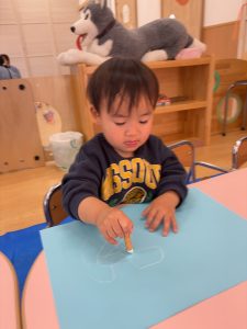 今までの製作は泣いてしまう子もいましたが、泣くことなく取り組めて上手にできました。