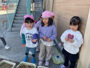 2月中旬に1度だけうっすら出来た氷に、大喜びした子ども達です。