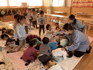 小さいお友達も泣くことなく訓練に参加できました。