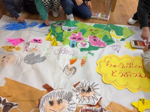 動物のえさや足跡なども自分たちで考えて描いて、にぎやかで楽しい作品が完成しました☆