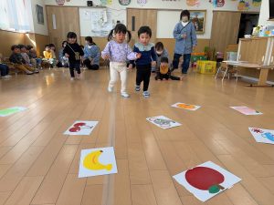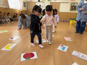 風が気持ちいいねと友達や保育者と話をしながら歩きました(^▽^)